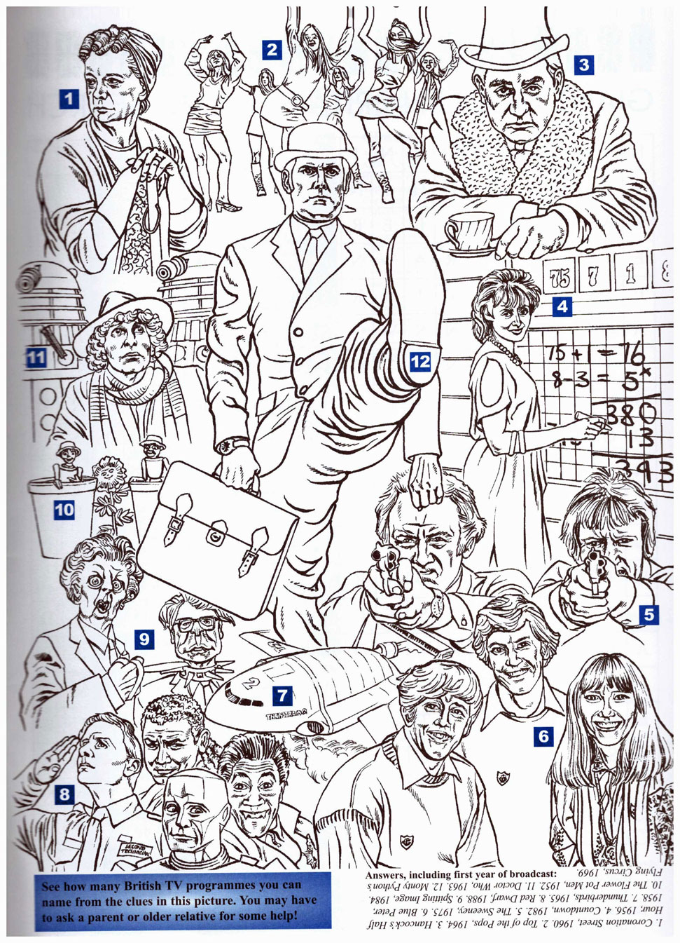 And finally here's your big British TV colouring in quiz page. How many grotesque gargoyle versions of celebrities can you recognise?